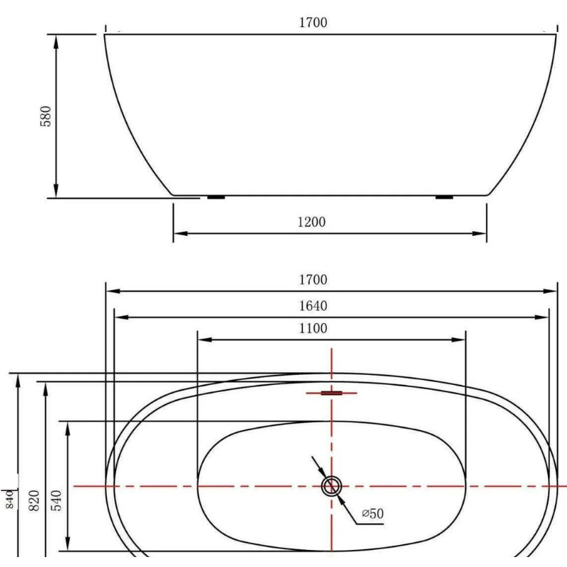 Lincoln Nevada Black 1700mm x 840mm Double Ended Freestanding Bath, two person width. The larger size Lincoln Nevada Freestanding bath is 1700mm and a comfortable 840mm wide for extra bathing comfort for one or two.