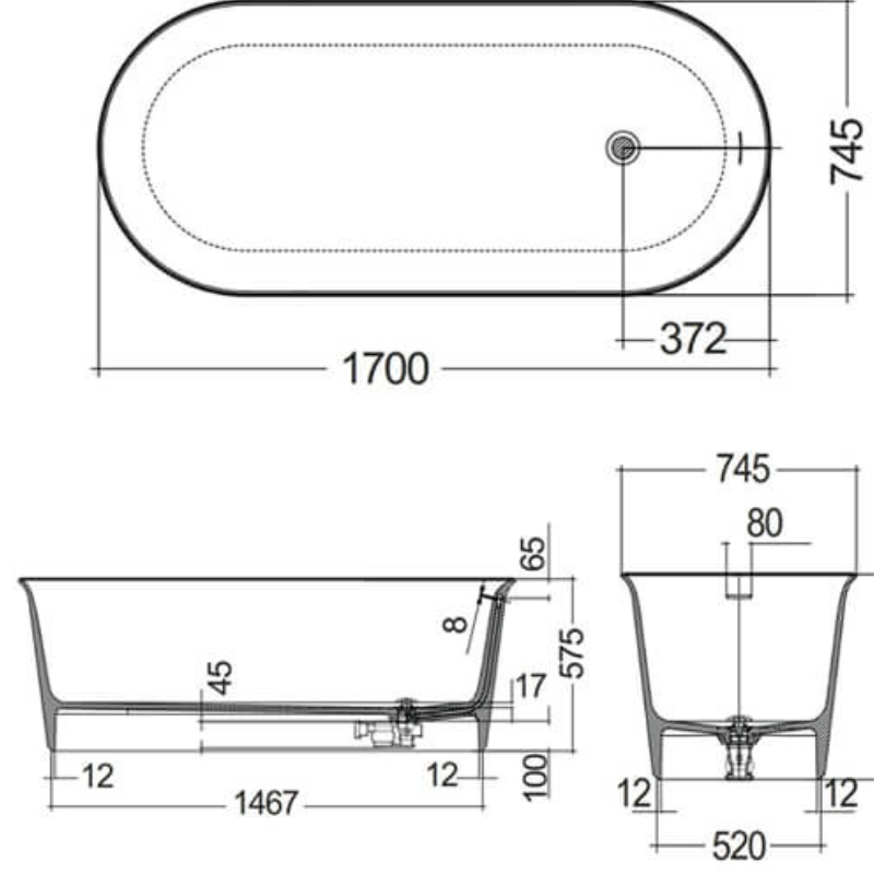 Dimensions: L1700 x W745 x H575mm